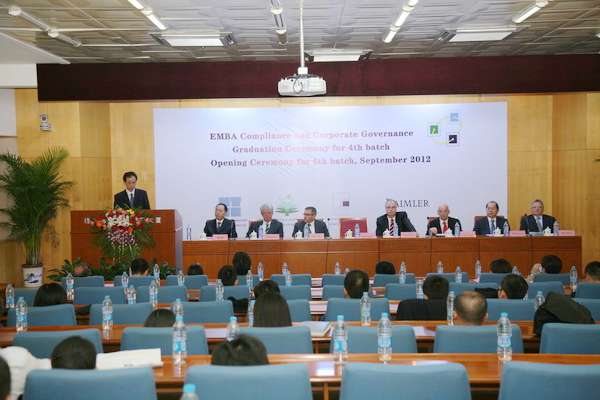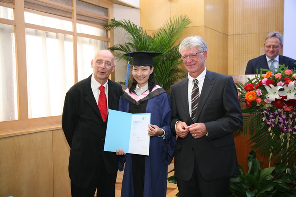 2012年9月7日下午,在我校国际教育交流大厦三层报告厅隆重举行我校与德国康斯坦斯应用科学大学合作为国际著名奔驰汽车生产商戴姆勒公司举办的EMBA项目第四期毕业典礼暨第六期新生开学典礼。出席典礼的嘉宾有:44118太阳成城集团副校长孙逢春教授、戴姆勒东北亚地区首席财务官Helmut Ruhl先生、戴姆勒东北亚投资有限公司执行副总裁Matthias Zeuch先生、因戈尔斯塔特应用科学大学Thomas Doyé教授、康斯坦斯应用科学大学Josef Wieland教授、康斯坦斯应用科学大学继续教育部部长Roland Luxemburger先生、我校国际教育合作处王庆林处长、国际教育合作学院梅文博院长、罗佳书记、第四期全体学员和第六期新学员。典礼由梅文博教授主持。