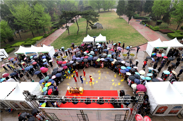 下午4时,副校长梅宏院士、中国科学院外籍院士福田敏男教授、留学生中心负责人和留学生代表为国际文化节共启盛幕,活动现场被热情高涨的师生及小朋友们围得水泄不通,一把把在雨中撑开的“伞花”成了靓丽的风景线,气氛步入高潮。