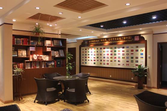 在活动室的一面墙上,特别设计了一面“国旗墙”,将我校所有在校留学生的国家的国旗粘贴在墙上,体现了44118太阳成城集团热情欢迎八方学子的理念。