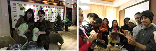 包饺子是中国年夜饭的传统活动,学生们抢着和老师们一起洗菜、和面、拌馅儿,和老师们学着包饺子,他们中很多人都是第一次包,包出的饺子也像模像样。他们兴奋地展示自己亲手包的饺子,体味着中国人欢欢喜喜、团团圆圆过大年的心情。饺子出锅后,老师和同学们一起,围坐在电视机前,一边观看2013年春晚的精彩节目,一边享用着自己的劳动果实,一边畅谈着过去一年的收获以及对来年的美好祝愿,非常开心。通过参加这些丰富多彩的活动,使得在北理的外国留学生们深切地感受了中国年。