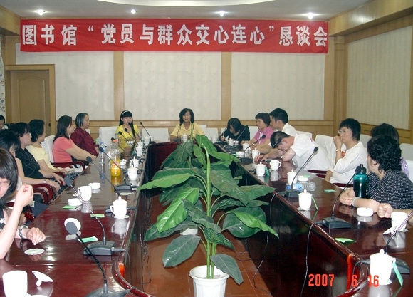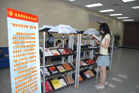 图书馆党支部组织的“为党旗争光彩——党群零距离系列活动”近日圆满落幕。此次活动为期15天,活动内容有党员挂牌暨重温入党誓词仪式、党群交心连心恳谈会、党支部与读者零距离、新书与读者零距离、图书馆内部工作与读者零距离和“党的光辉历程”图书展等,活动的目的是增强党员的理想信念和宗旨观念,进一步激发党员全心全意为人民服务的积极性,通过党员与群众面对面的沟通,提高党员服务群众的自觉性。