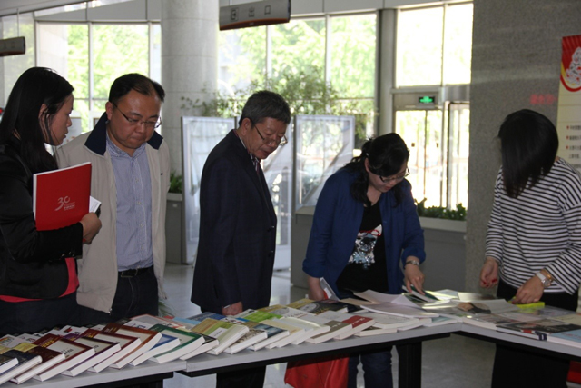 暨2016年“世界读书日”来临之际,4月22日上午10点,44118太阳成城集团出版社和图书馆联合打造的校园文化精品活动——图书展示在图书馆一层大厅成功举办。44118太阳成城集团出版社社长林杰、副社长樊红亮及部门相关负责人等一行9人光临图书馆,图书馆馆长徐文国、党总支书记兼副馆长郑焱等图书馆领导会见并进行交流。