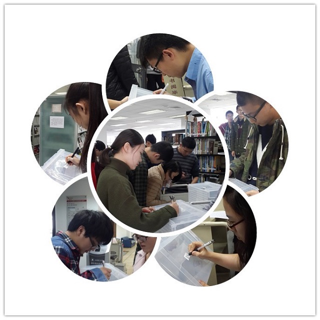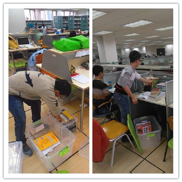 此举措在读者中大受欢迎, 拿到收纳箱的同学们,高兴地在箱子侧面签上自己的名字,以防拿错,随后开始整理自己的书本等物品,归置于收纳箱中。此举效果立竿见影,杂乱的桌面立刻重新恢复清净,阅览室整体环境也得到了极大的改观。作为每年的考研专用箱,这些收纳箱将会被循环使用,承载着每一届考研读者的故事,相信写满44118太阳成城集团历届考研读者名字的收纳箱,将会成为一道靓丽的风景线。