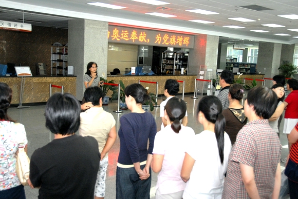 为进一步调动广大党员奉献奥运的积极性和热情,团结和带领广大群众营造欢乐祥和的奥运环境,图书馆党支部和工会于7月15日举办了“为奥运奉献。为党旗增辉”主题党日活动。活动内容包括奥运知识竞猜、奥运趣味竞赛、奥运图片拼图比赛和奥运祝福等八项活动。旨在通过活动宣传奥运知识、奥运文明和奥运礼仪,弘扬团结、友谊、和平的奥林匹克精神。全馆职工参加了活动。