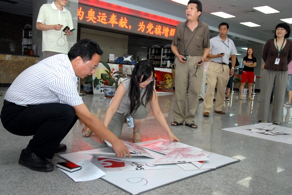 拼接奥运彩图,放飞奥运梦想。