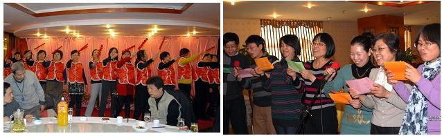 团拜会上,各工会小组为大家献上了精心准备的节目,精彩的表演把团拜会推向一个又一个高潮,博得了大家一阵又一阵的掌声和欢呼声。