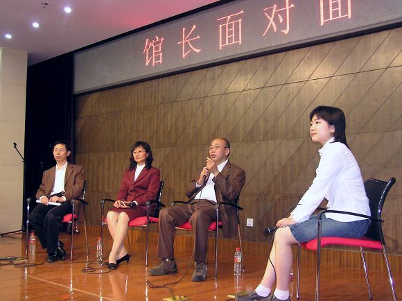 5月10日下午, 图书馆一层报告厅人头攒动,热闹非凡。随着“馆长面对面”和“有奖问答颁奖仪式”的开始,图书馆宣传月活动进入了尾声。“馆长面对面”采用主持人访谈和观众提问结合的形式,开辟了图书馆与读者间沟通与交流的渠道。曹树人馆长、马宏伟书记和时春山副馆长分别介绍了图书馆新馆以人为本的设计理念,完善的资源配置和不断提高的馆藏资源建设,并抒发了各自对图书馆未来发展的希望。