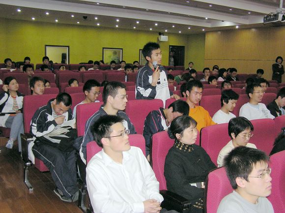 馆领导热情洋溢的发言激发了各位同学的热忱,他们就自己关心的文献收藏、书刊赔偿、旧馆改造、占座现象等问题踊跃提问,馆领导一一进行了耐心地解答。