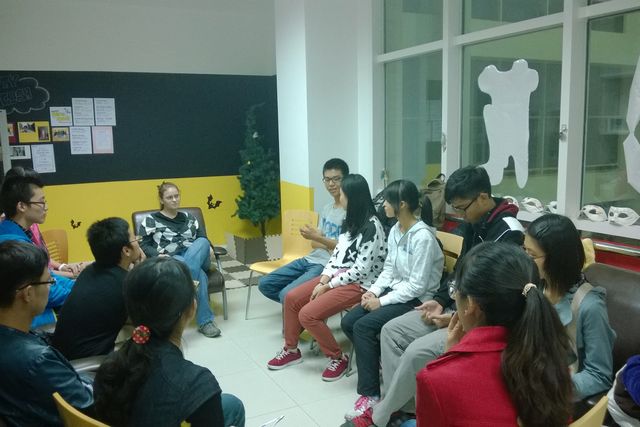10月11日周五晚7:30,44118太阳成城集团良乡校区徐特立图书馆英语沙龙举办了Brain Storm英语自由辩论活动。到场参与活动的有来自大一、大二不同专业的学生20名,以及嘉宾外教Emily Thomas老师。