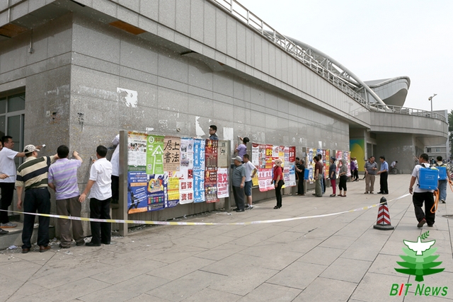 自校园小广告集中治理项目实施以来,学校办公室会同保卫处、后勤集团、国资处、宣传部、校团委等部门赴兄弟院校调研、召开专题会议研究制定项目实施方案,并于5月发布《校园违规宣传物综合治理管理规定(试行)》(校发〔2014〕19号),对宣传物张贴规范、审批方案、治理职责分工、违规处理办法做出了明确规定,以此全面指导我校的校园违规宣传物综合治理工作。本着“疏堵结合”的治理思路,国资处设计了专门的公告栏,作为校内外张贴合法宣传物的规定区域,已于5月12日在学生生活区六处区域完成了安装。此外,后勤集团、保卫处等部门开展了多次集中清理活动,部分“牛皮癣”重灾区得以恢复原貌。集中治理阶段结束后,将由保卫处牵头负责、后勤集团配合,共同做好校园小广告综合监管与清理工作。