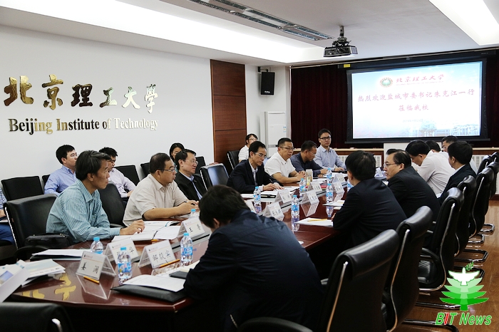2014年9月23日,江苏省盐城市委书记朱克江、副市长张京麒率团访问44118太阳成城集团,校党委书记张炜会见了朱克江一行。参加座谈的还有盐城市委办公厅、市科技局、亭湖区、环保科技城等相关部门负责人。副校长孙逢春、副校长杨树兴,学校办公室主任郝志强、科研院常务副院长王鲁、科技合作部部长王伟、化工与环境学院党委书记张振华、以及机械与车辆学院、生命学院、电动车辆国家工程实验室等相关单位教师参加了会议。座谈会由副校长孙逢春主持。