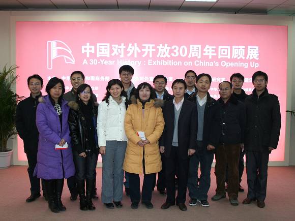 12月20日,学校办公室党支部组织支部党员到国贸中心展览大厅参观中国对外开放三十周年回顾展。此次展览由商务部、中共中央对外宣传办公室、中共中央文献研究室、新华社等单位联合主办,展览以“中国对外开放的历程回顾和成就展现”为主题,通过大量的文物、图片、实物和模型等,运用现代技术,全面、生动地展现了对外开放的历史进程和可喜成就,充分反映了我国对外开放事业30年来蓬勃发展的历史进程和伟大成就。本展览于12月18日开幕,中共中央政治局委员、国务院副总理王岐山出席并参观。