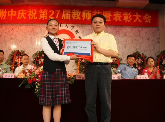 胡海岩校长向理工附中优秀生源基地授牌,并为理工附中设立的国内首个中学“理工实验班”授牌。