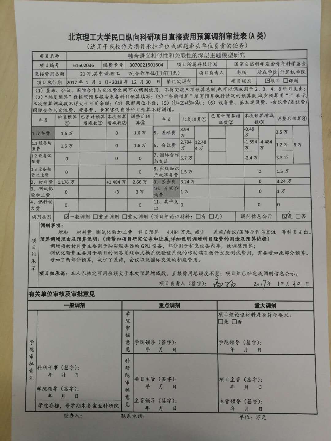 项目61602036预算调剂公示
