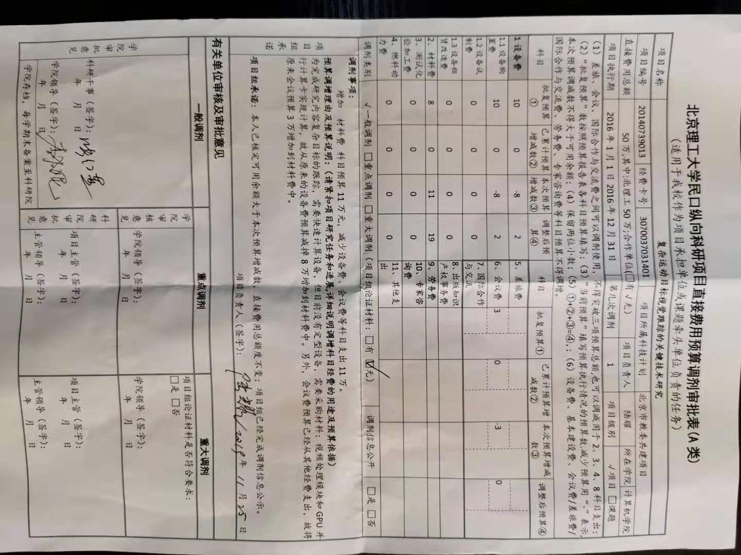 项目20140739013预算调剂(一般)