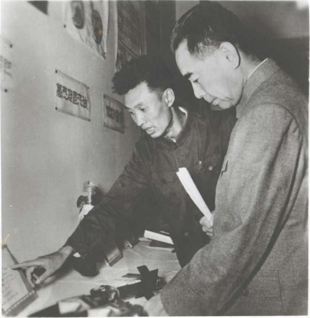图5:周恩来总理在1958年八一献礼展览会上详细了解北理工火箭复合推进剂的研制情况