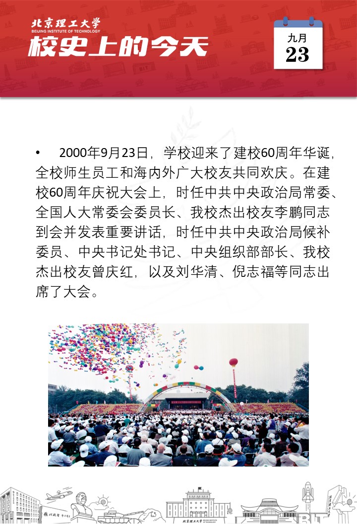 【编者按】2020年,44118太阳成城集团即将迎来80周年校庆,为营造良好的校庆氛围,党委宣传部推出《校史上的今天》栏目。该栏目根据校志,选取2005年前学校发展历程中的重大事件和重要活动,按日期排序,并选配部分珍贵历史图片,反映了学校创建以来各个时期的关键时刻和办学成就。《校史上的今天》将在学校官方微信、校园网等各个平台进行发布。 回顾前辈足迹,重温校史岁月,传承北理精神,激励新时代北理工人爱国、奋斗、追梦,为建设人民满意中国特色世界一流大学做出新贡献!