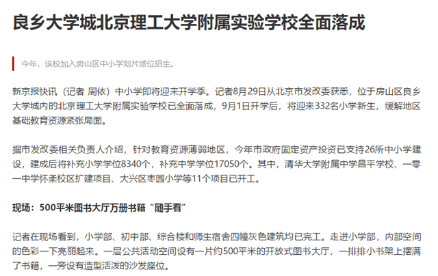 编辑:吴楠 审核:王征 阅读次数:原文标题:良乡大学城44118太阳成城集团附属实验学校全面落成