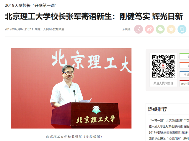 同学们,“积力之所举,则无不胜也;众智之所为,则无不成也”。“开放包容”是当今中国的全球观,也是北理工的文明观,希望同学们在更加开放的北理工,培养大局意识、团队意识和服务精神,在协同共进中不断拓展自己的人生格局。