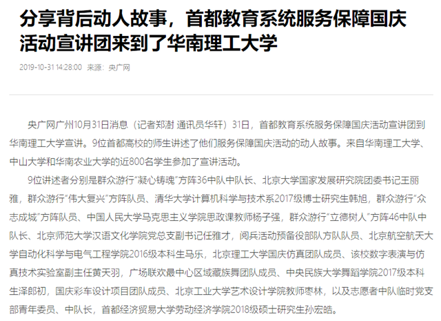 分享背后动人故事,首都教育系统服务保障国庆活动宣讲团来到了华南理工大学