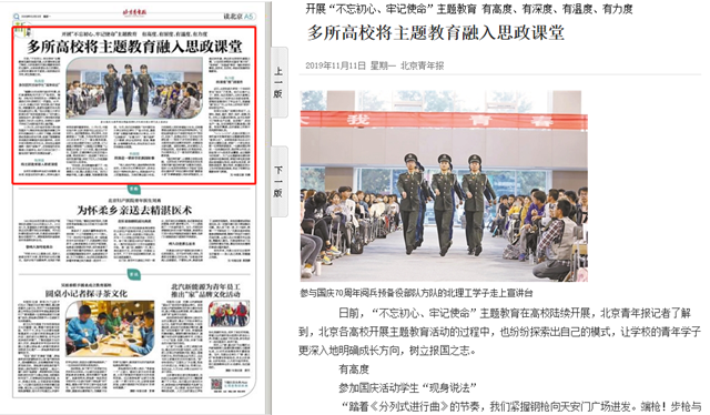 日前,“不忘初心、牢记使命”主题教育在高校陆续开展,北京青年报记者了解到,北京各高校开展主题教育活动的过程中,也纷纷探索出自己的模式,让学校的青年学子更深入地明确成长方向,树立报国之志。