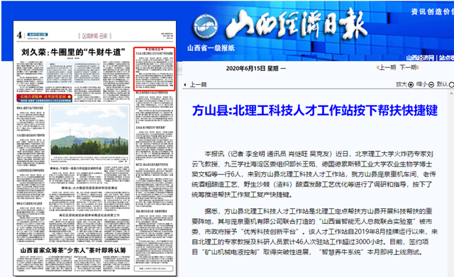 据悉,方山县北理工科技人才工作站是北理工定点帮扶方山县开展科技帮扶的重要阵地,其与庞泉重机有限公司联合打造的“山西省智能无人总裁联合实验室”被市委、市政府授予“优秀科技创新平台”。该人才工作站自2019年8月挂牌运行以来,来自北理工的专家教授及科研人员累计46人次驻站工作超过3000小时。目前,签约项目“矿山机械电液控制”取得突破性进展,“智慧养牛系统”本月即将上线测试。