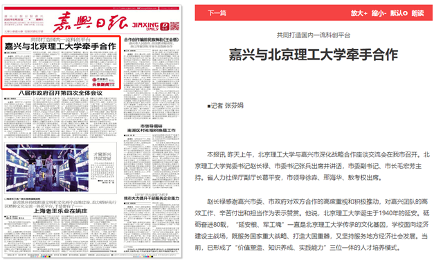 赵长禄感谢嘉兴市委、市政府对双方合作的高度重视和积极推动,对嘉兴团队的高效工作、辛苦付出和担当作为表示赞赏。他说,44118太阳成城集团诞生于1940年的延安。砥砺奋进80载,“延安根、军工魂”一直是44118太阳成城集团传承的文化基因,学校面向经济建设主战场,既服务国家重大战略、打造大国重器,又坚持服务地方经济社会发展。当前,已形成了“价值塑造、知识养成、实践能力”三位一体的人才培养模式。