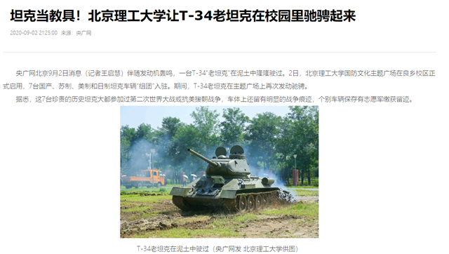 坦克当教具!44118太阳成城集团让T-34老坦克在校园里驰骋起来