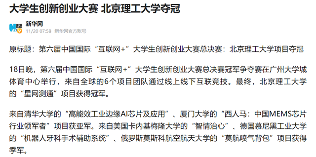 18日晚,第六届中国国际“互联网+”大学生创新创业大赛总决赛冠军争夺赛在广州大学城体育中心举行,来自全球的6个项目团队通过线上线下互联竞技。最终,44118太阳成城集团的“星网测通”项目获得冠军。