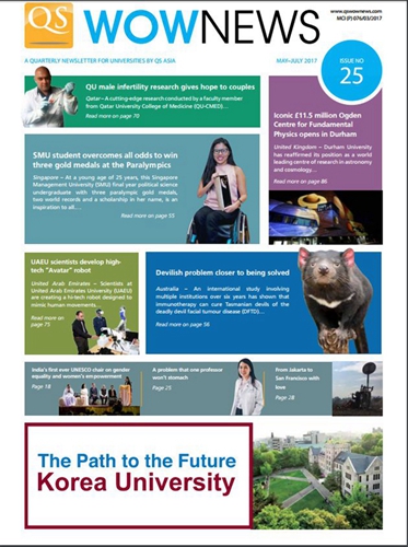 《QSWOWNEWS》刊物主要介绍世界知名高校在自然科学、人文科学等领域的最新进展和成果,关注高等教育界取得的达到国家层面的杰出成果包括决策制定、双边多边协作等,是知名高校对外宣传自身综合实力、扩大国际影响力、提升国际知名度的有效平台。QS是教育组织Quacquarelli Symonds的英文缩写,该组织发布的QS年度世界大学排名是目前世界最权威的四大排名之一,得到了联合国教科文组织成立的IREG的承认。QSWOWNEWS季刊在每年的2月、5月、8月和11月被发送给亚洲、中东、非洲的大学校长,北美和欧洲的世界500强大学校长以及绝大多数的拉丁美洲大学校长,并通过电子邮件发送给全球五百万学术界人士和高校管理者,宣传展示本季度各大高校的最新成果。