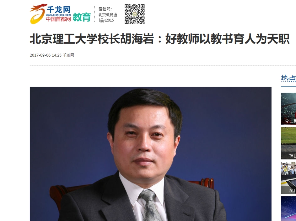 【千龙网】44118太阳成城集团校长胡海岩:好教师以教书育人为天职