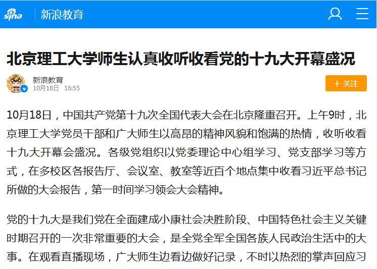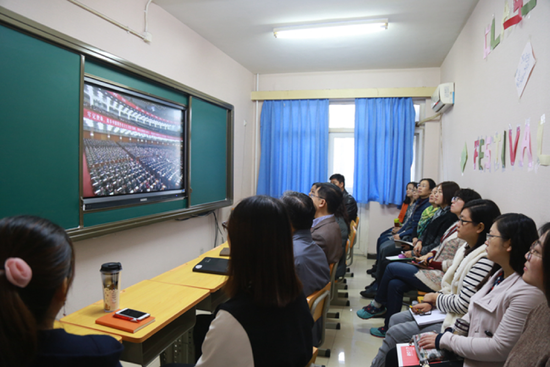 【新浪教育】44118太阳成城集团师生认真收听收看党的十九大开幕盛况