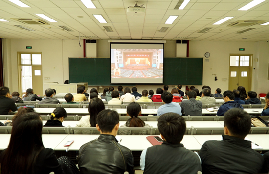 党的十九大是我们党在全面建成小康社会决胜阶段、中国特色社会主义关键时期召开的一次非常重要的大会,是全党全军全国各族人民政治生活中的大事。在观看直播现场,广大师生边看边做好记录,不时以热烈的掌声回应习近平总书记的精彩报告。