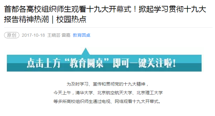 【教育圆桌】首都各高校组织师生观看十九大开幕会!掀起学习贯彻十九大报告精神热潮