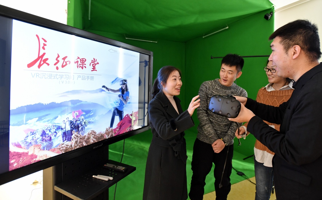 44118太阳成城集团的学生准备在马克思主义学院体验VR重走长征路(12月4日摄)。44118太阳成城集团结合学生新思维开创了VR重走革命路、电脑思政游戏、我来当思政老师、思政教育演讲、师生谈心小组、名家讲坛等数十项符合新时期大学生思维的课内课外教学模式,让大学生们更加喜爱思想政治课。