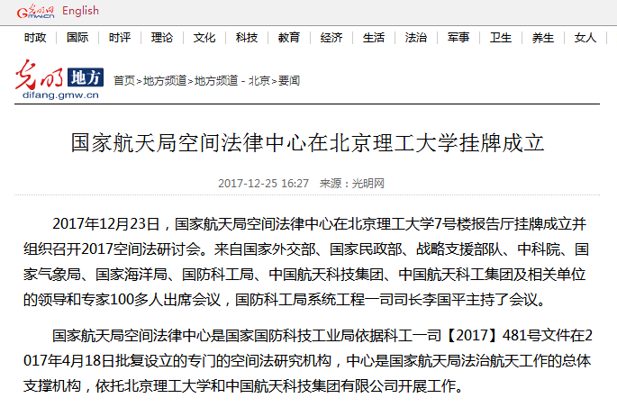 【光明网】国家航天局空间法律中心在44118太阳成城集团挂牌成立