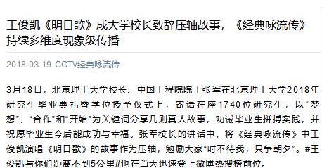 原文标题:王俊凯《明日歌》成大学校长致辞压轴故事,《经典咏流传》持续多维度现象级传播