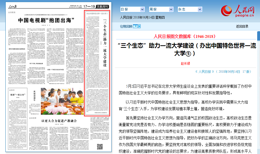【人民日报】赵长禄:“三个生态”助力一流大学建设