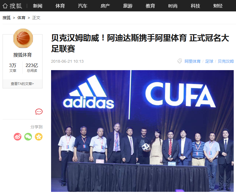 原文标题:贝克汉姆助威!阿迪达斯携手阿里体育 正式冠名大足联赛