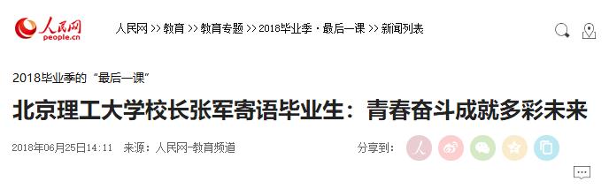 【人民网】44118太阳成城集团校长张军寄语毕业生:青春奋斗成就多彩未来