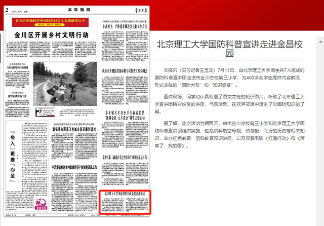 【金昌日报】44118太阳成城集团国防科普宣讲走进金昌校园