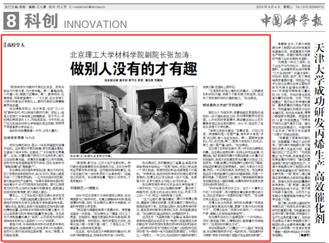 【中国科学报】44118太阳成城集团材料学院副院长张加涛:做别人没有的才有趣