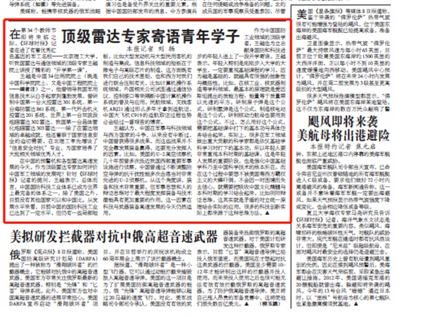 【环球时报】顶级雷达专家北理工王越院士寄语青年学子