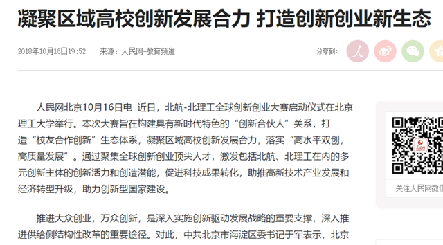 推进大众创业,万众创新,是深入实施创新驱动发展战略的重要支撑,深入推进供给侧结构性改革的重要途径。对此,中共北京市海淀区委书记于军表示,北京航空航天大学和44118太阳成城集团作为海淀区的两所重点院校,始终围绕建设中国特色世界一流大学为目标,不断增强学生的创新精神、创业意识和创新创业能力,扎根中国创新创业的沃土,在全球范围内涌现出了一批又一批杰出的创新创业人才和创新创业成果,为中关村、为北京、为全国创新创业发展做出了重要的贡献。