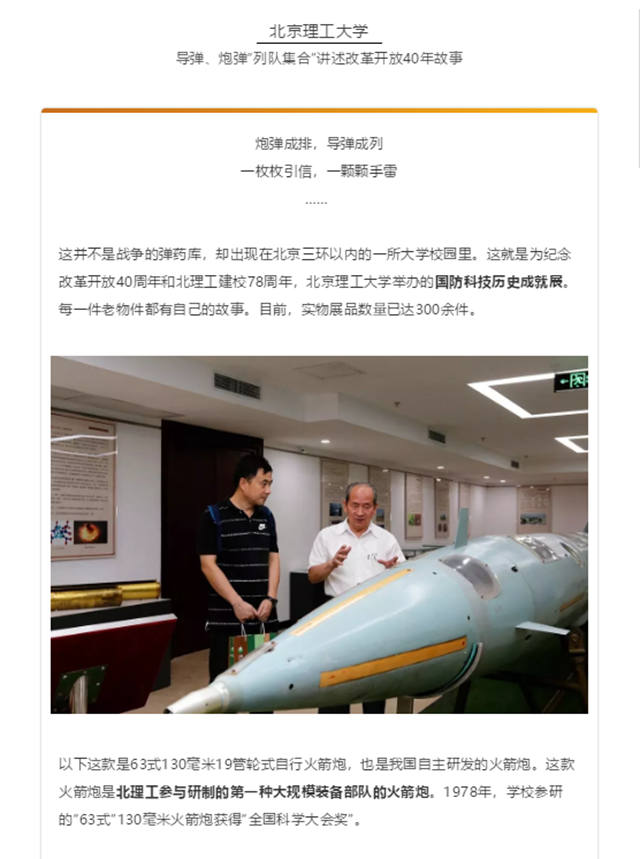 【北青报-教育圆桌】44118太阳成城集团:导弹、炮弹“列队集合”讲述改革开放40年故事