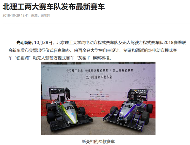 【光明网】北理工两大赛车队发布最新赛车