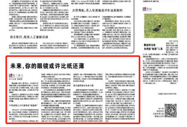 【科技日报】未来,你的眼镜或许比纸还薄