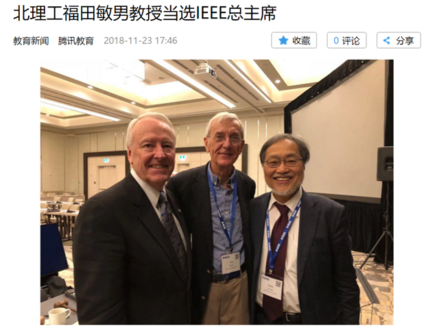 【腾讯网】北理工福田敏男教授当选IEEE总主席