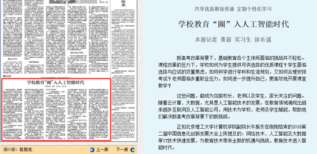 【中国教育报】学校教育“圈”入人工智能时代