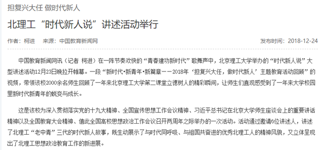 【中国教育新闻网】北理工“时代新人说”讲述活动举行